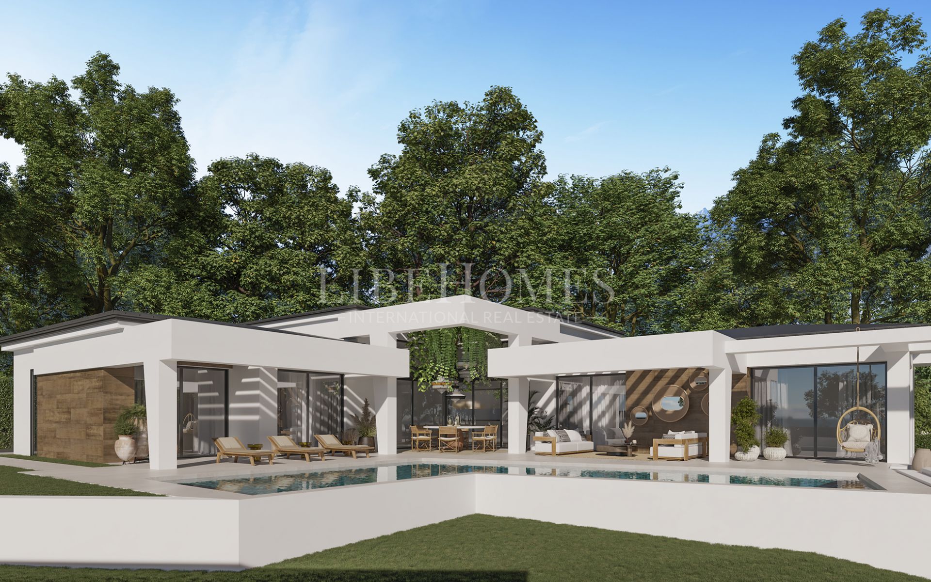 Nueva promoción de 3 villas de 1 planta en Nueva Andalucía, Marbella. Ubicación privilegiada en una zona tranquila rodeada de árboles, a solo unos minutos en coche de Puerto Banús, las playas y todos los servicios.