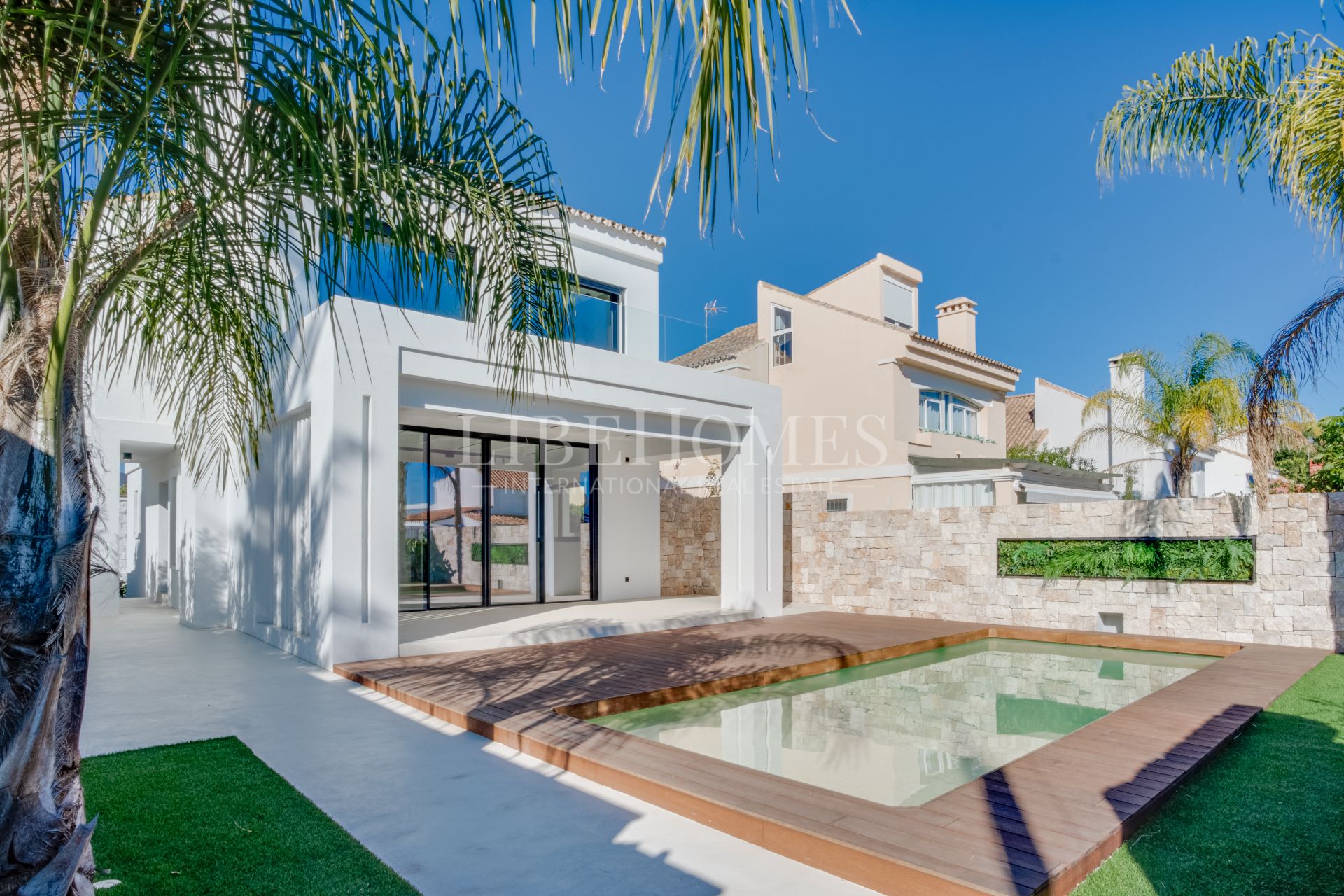 Modern-style beachside villa, New Golden Mile, Estepona. Located in Costalita, a 5-minute walk to the beach, within walking distance of all amenities, a 5-minute drive to San Pedro de Alcántara, and less than 10 minutes from Puerto Banús.