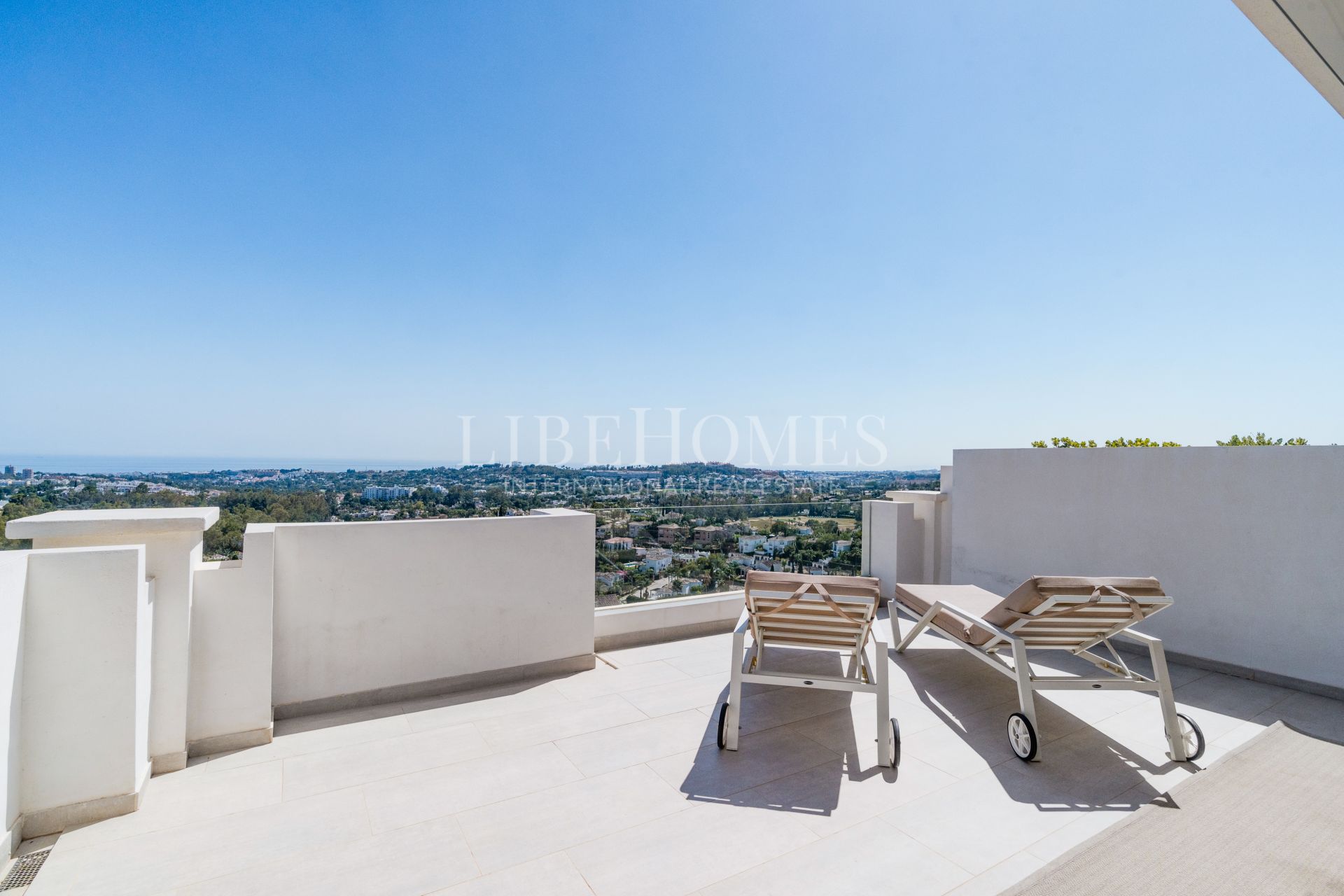 From the living room, we access the large private terrace, where you can enjoy panoramic views of Marbella’s stunning landscape. This outdoor space is perfect for al fresco dining, relaxing, or simply soaking up the tranquil surroundings.