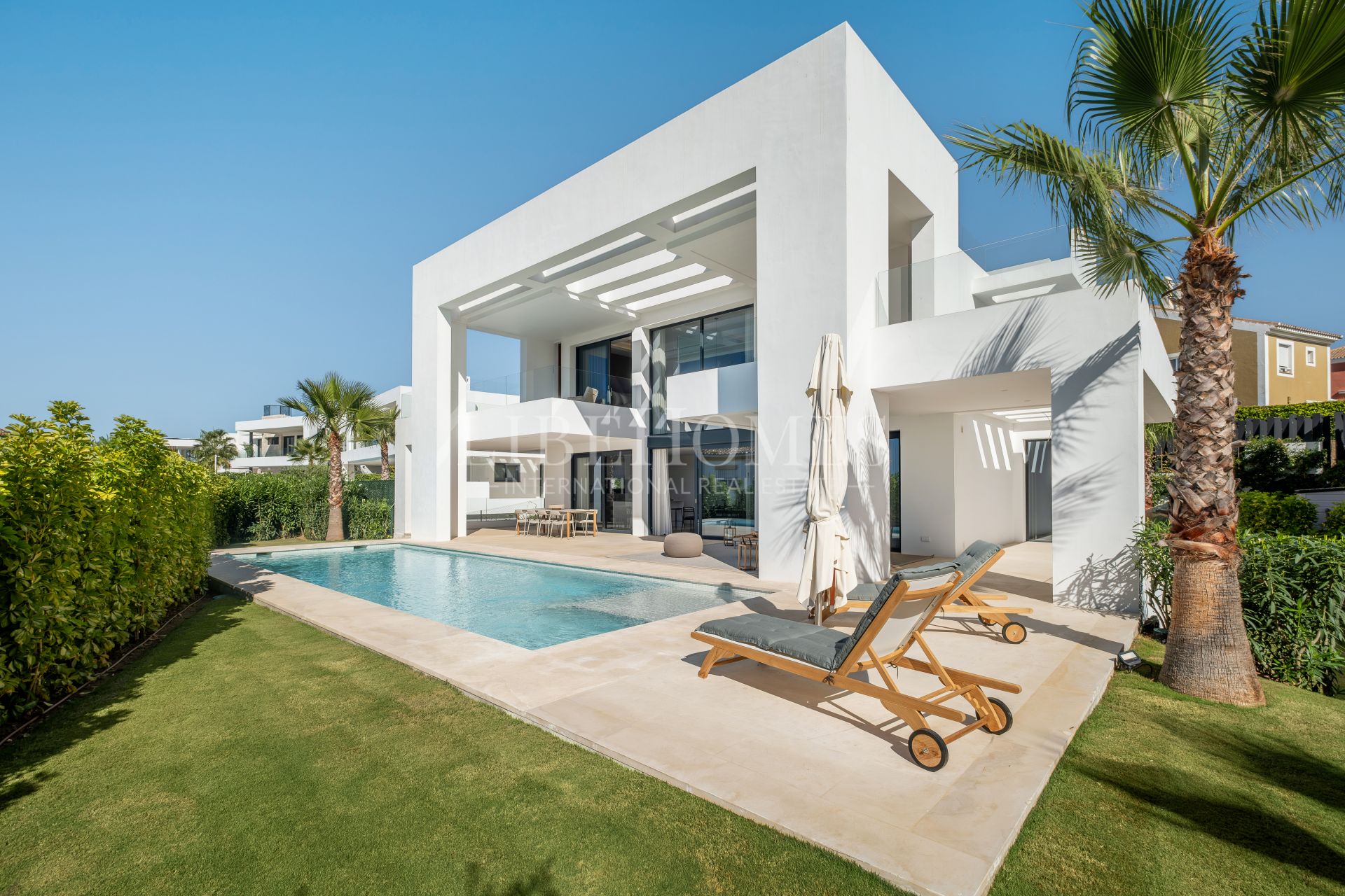 Modern luxury villa in El Paraiso, New Golden Mile, Estepona. Just 10 minutes from the lively Puerto Banús and conveniently close to amenities and an international school.