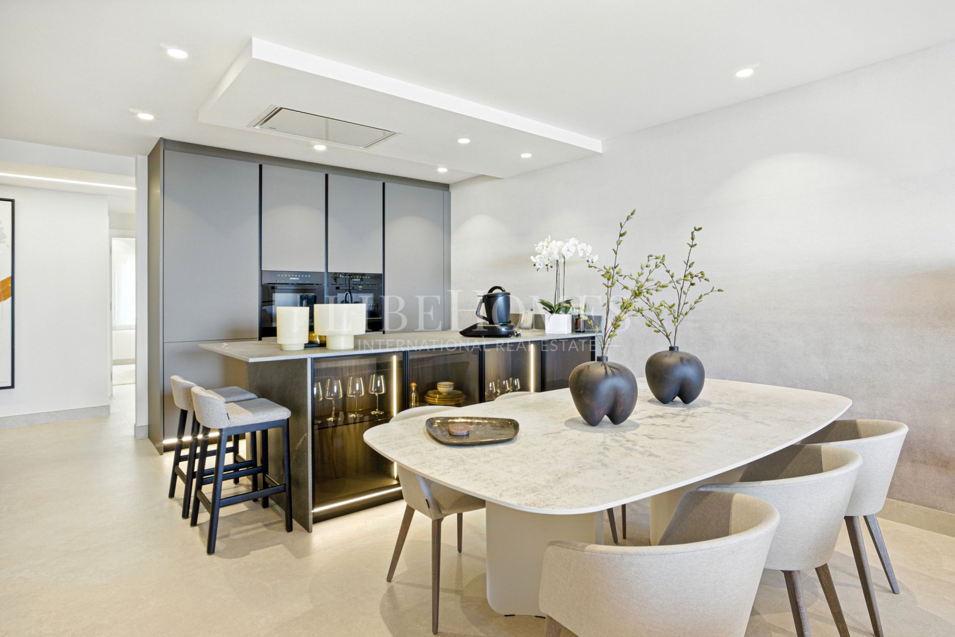 Cette luxueuse résidence en bord de mer a été impeccablement rénovée selon les normes les plus élevées. À l’intérieur, l’appartement allie style et fonctionnalité.