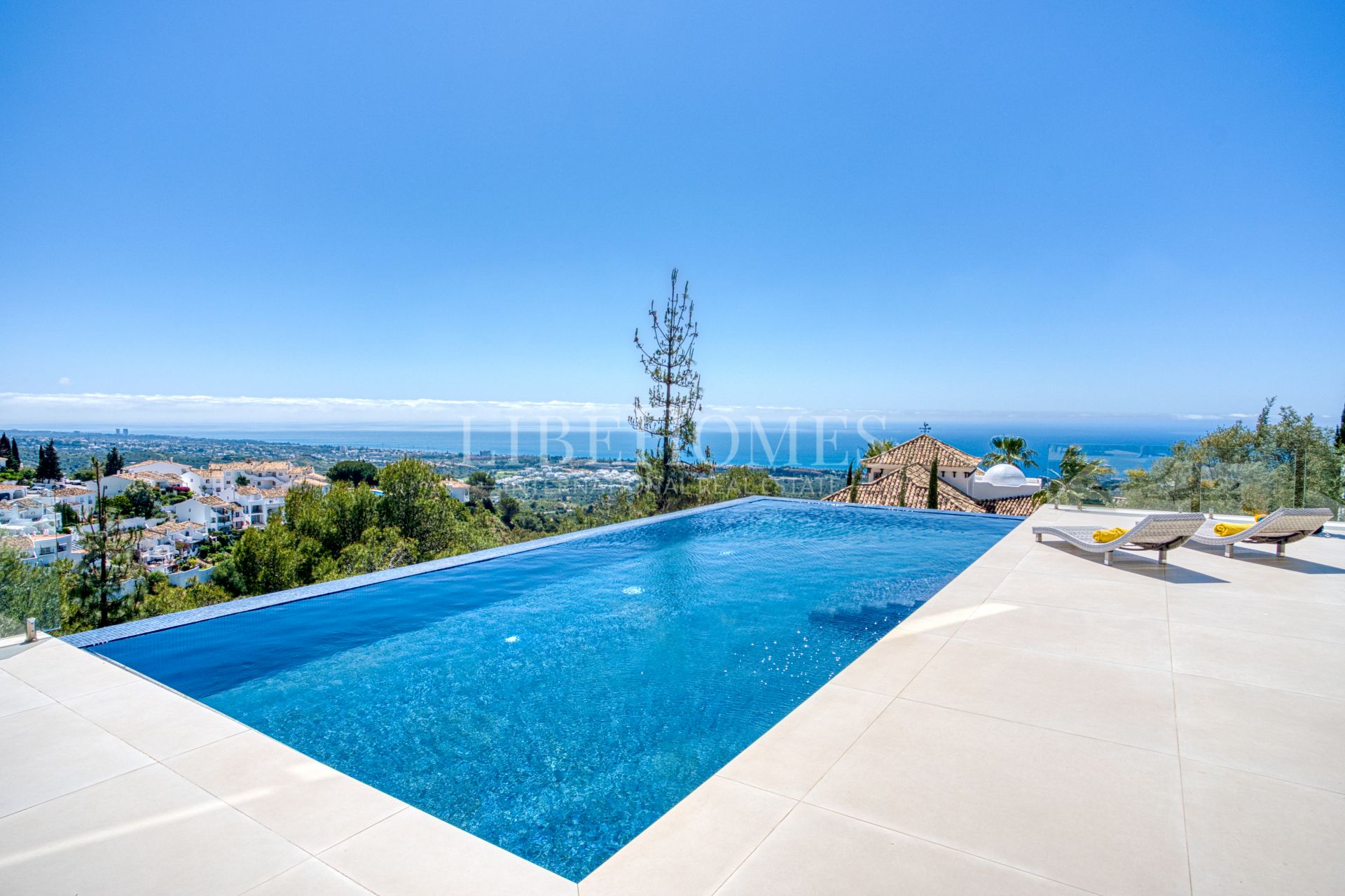 Villa avec vue panoramique sur la mer, Altos de Los Monteros, Marbella. Quartier résidentiel de luxe très calme, en pleine nature, à moins de 10 minutes en voiture du centre de Marbella et des plages.