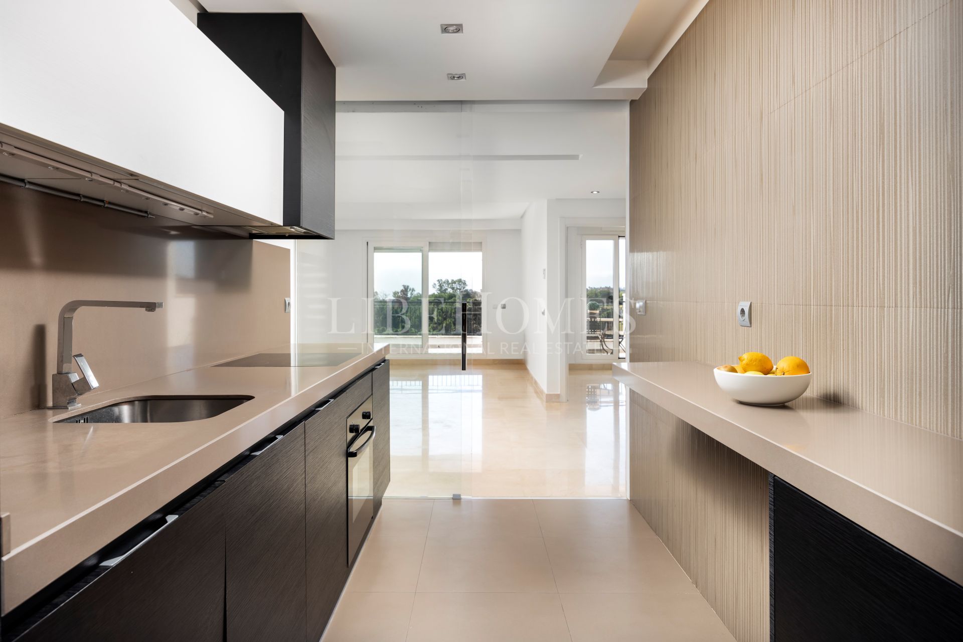 Ce superbe appartement d’angle offre une vue panoramique spectaculaire sur le golf et les montagnes. La vue imprenable sur le golf depuis la terrasse principale est un atout majeur : l’endroit idéal pour profiter pleinement de la journée, que ce soit en savourant votre premier café du matin ou en admirant l’un des couchers de soleil légendaires sur la Costa del Sol. Cette terrasse offre également une vue sur la mer.