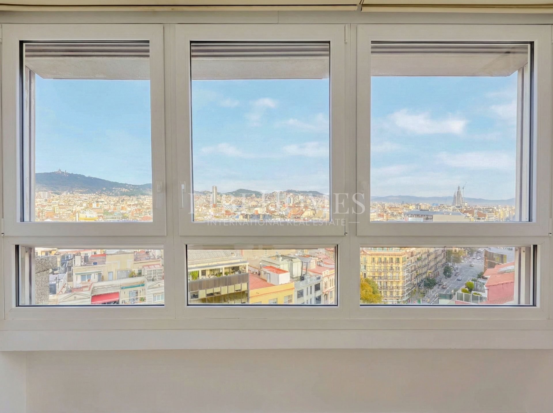 Appartement au centre de Barcelone, vue panoramique sur ville et mer. Cette propriété unique, située en étage élevé dans le quartier de l’Eixample, se trouve à proximité du Passeig de Gràcia, de la Plaça de Catalunya, de la place Enric Granados et de la gare TGV de Barcelone-Sants.