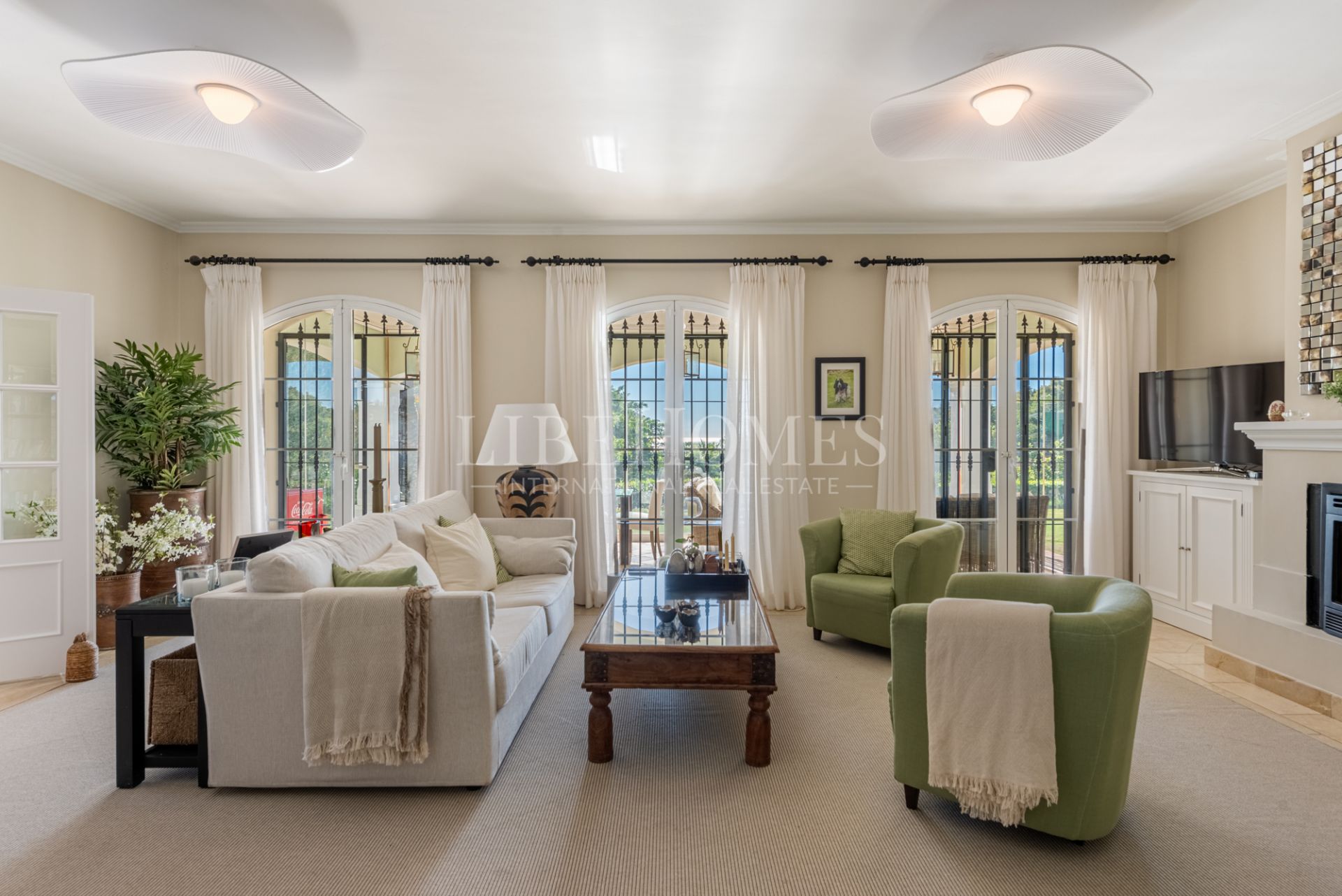 Эта недвижимость со следующими удобствами: Полностью оборудованная кухня, Подсобное помещение, Камин, Мраморные полы, Винный погреб, Кладовое помещение, Сигнализация, Горная сторона, Круглосуточная охрана, Вид на море, Вид на горы, Прачечная, Крытая терраса, Встроенные шкафы, Закрытая территория, Кондиционирование, Вид на сад, Подогрев полов в ванных комнатах, Рядом море/пляж, Возле поля для гольфа, Игровая комната, Дополнительный мебели и Отличное состояние.
